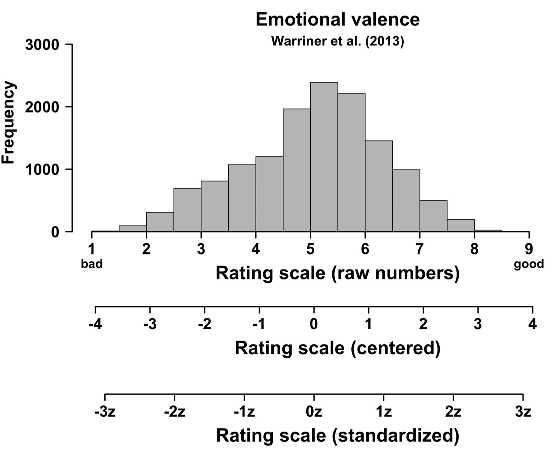 Note that standardization changes the units of measurement to ‘standard units’ (often represented by letter z), but not the relative relationships among data points (As can be seen Winter, 2019, p.88).